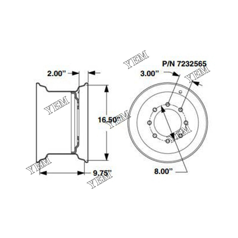 7232565 16.5*9.75 Standard Wheel Rim For Bobcat S250 S630 S650 S76