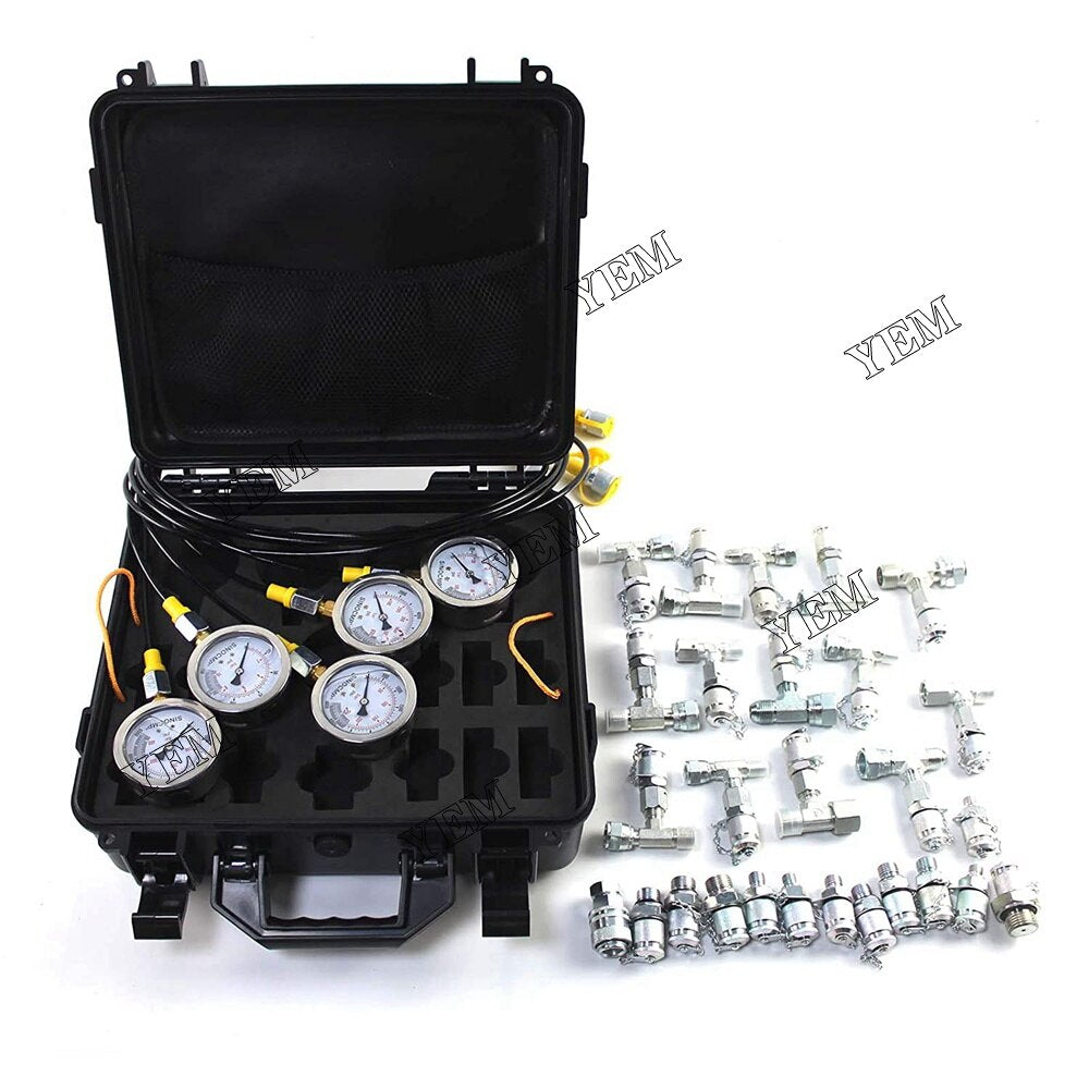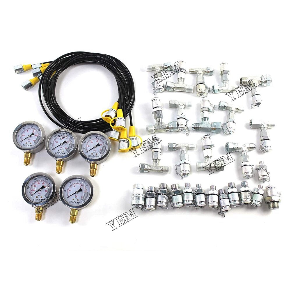 YEM Engine Parts 250~600Bar Hydraulic Pressure Test Kit 9 Couplings 3 Hose 3 Gauge For Excavator